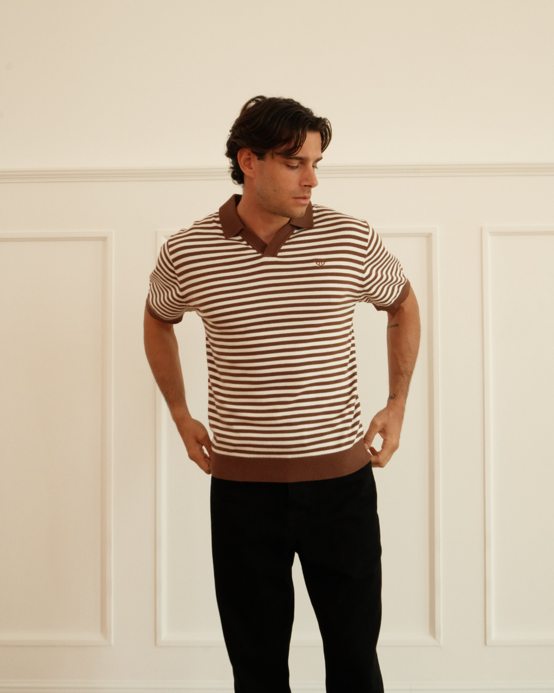 Vintage vibes. Everyday ease. The Mocha & Cream Milton Striped Polo blends retro charm with modern comfort. With earthy tones, contrast trims, and a clean silhouette, it’s built for laid-back days, warm weather, and effortless style.