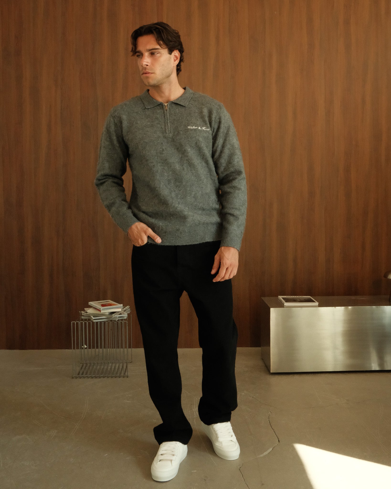 The Nimbus Quarter Zip delivers a clean, elevated look with its luxury Brushed Fabric Finish and refined silhouette. Designed for comfort without sacrificing style, it features subtle Walker & Hunt embroidery and a polished quarter-zip collar.